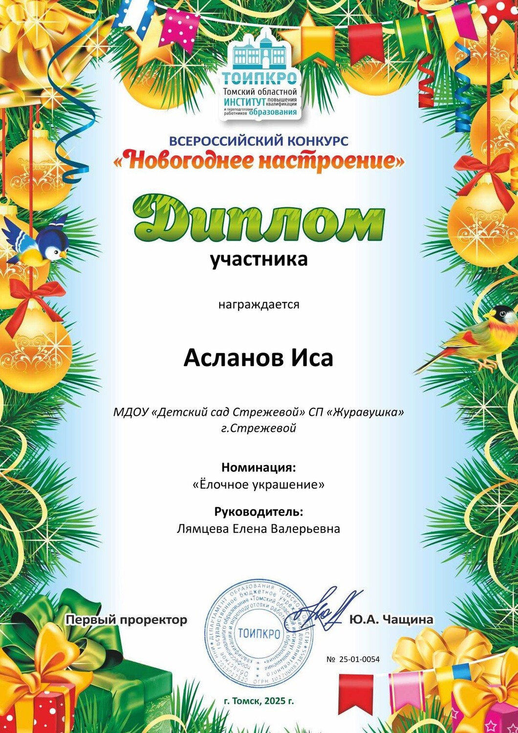 16. ТОИПКРО, Всероссийский конкурс Новогоднее настроение", номинация "Елочное украшение", диплом участника, 2025 г.