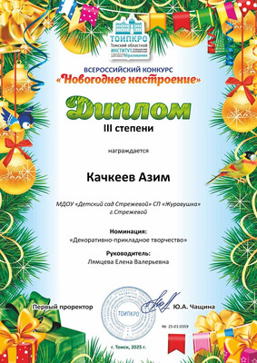 17. ТОИПКРО, Всероссийский конкурс Новогоднее настроение", номинация "Декоративно-прикладное творчество", диплом ||| степени, 2025 г.