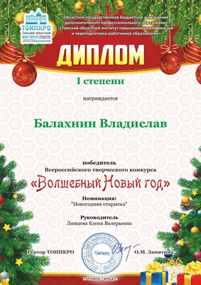 15. ТОИПКРО, Всероссийский творческий конкурс "Волшебный новый год", номинация "Новогодняя открытка", диплом | степени, 2024 г.